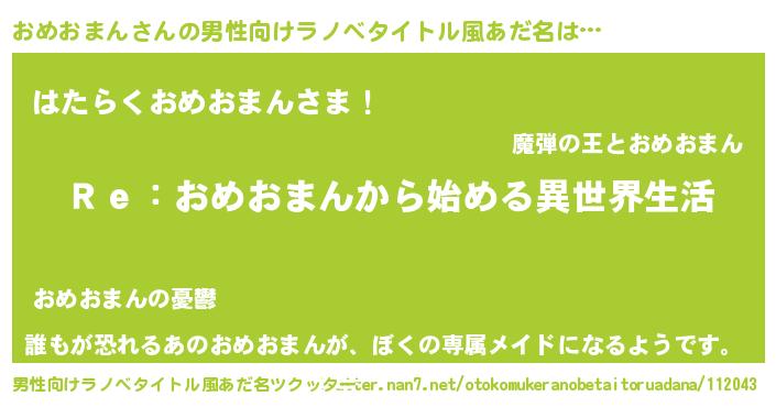 | 女子向けラノベタイトル風あだ名 | 『おめおまんストレイドッグス』 |