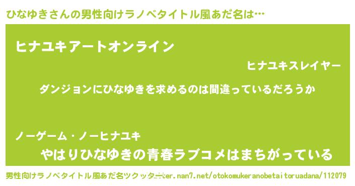 | 女子向けラノベタイトル風あだ名 | 『ひなゆきは平凡を望む』 |