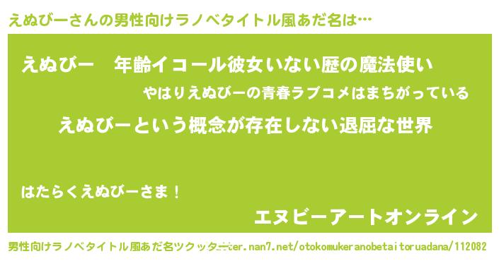 | 伝説のあだ名 | 『古より伝わる吟遊詩人えぬびー』 |