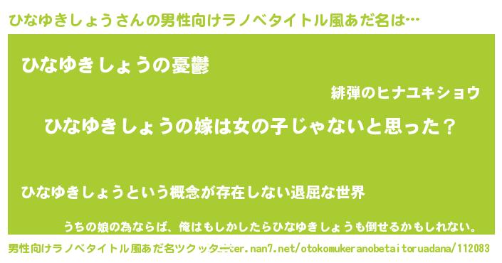 | 意味不明あだ名 | 『とにかく怪しいひなゆきしょう』 |