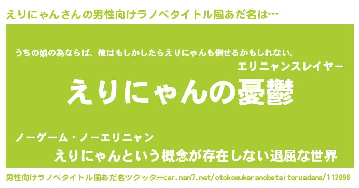 | 胡散臭い通販商品みたいなあだ名 | 『必ず成功する霊験あらたかなお札…その名も「えりにゃん」』 |