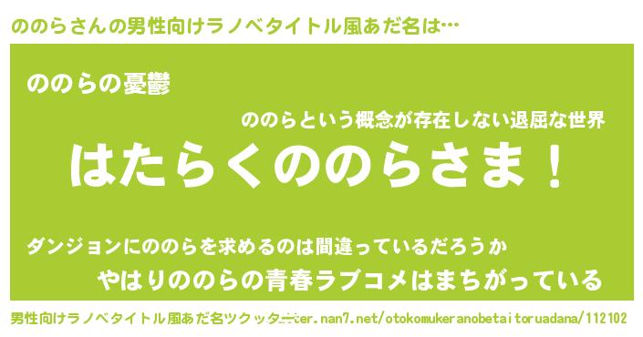 | ヒーロー風カッコイイあだ名 | 『スーパーノノラ』『ウルトラののらマン』 |
