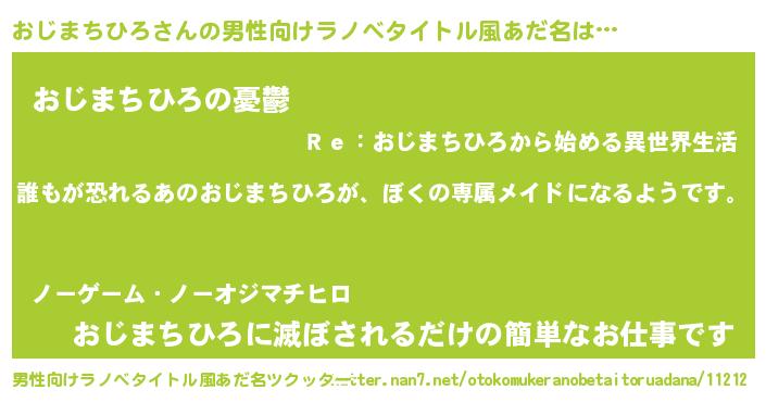 | 女子向けラノベタイトル風あだ名 | 『おじまちひろの契約王妃』 |