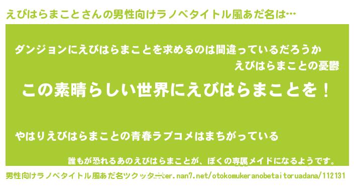 | 胡散臭い通販商品みたいなあだ名 | 『あなたにだけ特別に提供する限定10本のレアな日本酒…その名も「えびはらまこと」』 |