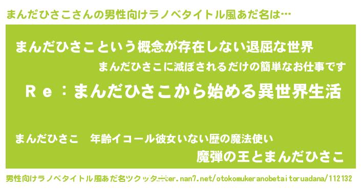 | 女子向けラノベタイトル風あだ名 | 『まんだひさこストレイドッグス』 |