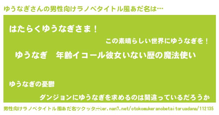 | 胡散臭い通販商品みたいなあだ名 | 『全米が絶賛したサプリメント…その名も「ゆうなぎ」』 |
