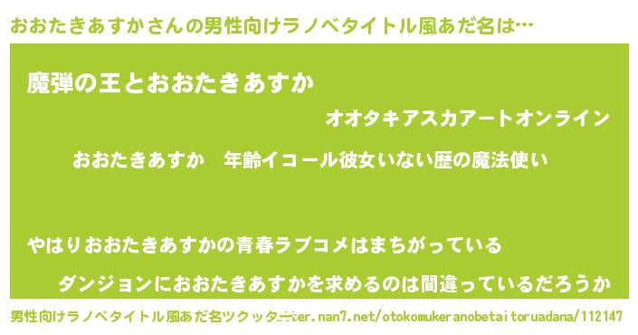 | 女子向けラノベタイトル風あだ名 | 『おおたきあすかの玉の輿計画!』 |