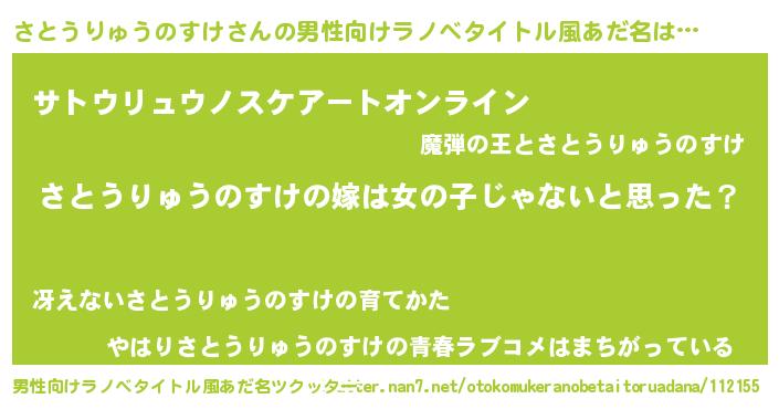 | 伝説のあだ名 | 『解き放たれた僧侶さとうりゅうのすけ』 |
