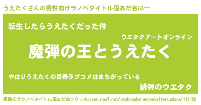 うえたくさんの男性向けラノベタイトル風あだ名をツクッター!