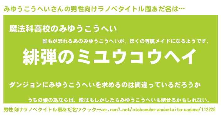 | 意味不明あだ名 | 『自称みゆうこうへい』 |