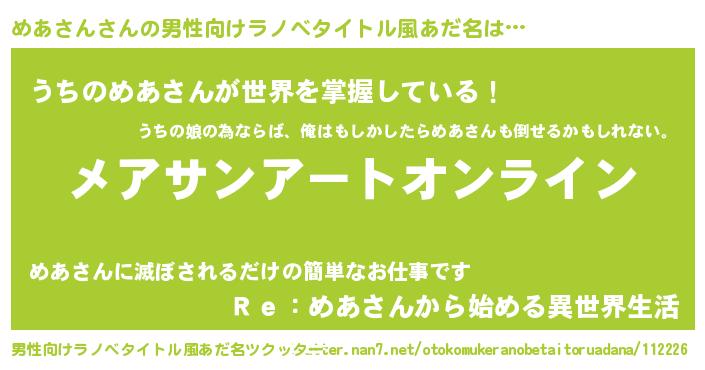 | 胡散臭い通販商品みたいなあだ名 | 『億万長者になれる霊験あらたかなお札…その名も「めあさん」』 |