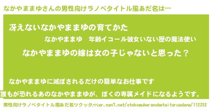 | 胡散臭い通販商品みたいなあだ名 | 『伝統あるサプリメント…その名も「なかやままゆ」』 |