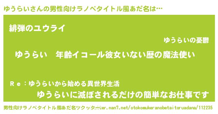 | 胡散臭い通販商品みたいなあだ名 | 『億万長者になれる水晶球…その名も「ゆうらい」』 |