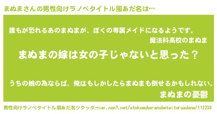 | 女子向けラノベタイトル風あだ名 | 『まぬま様がみてる』『まぬまの婚約者』 |