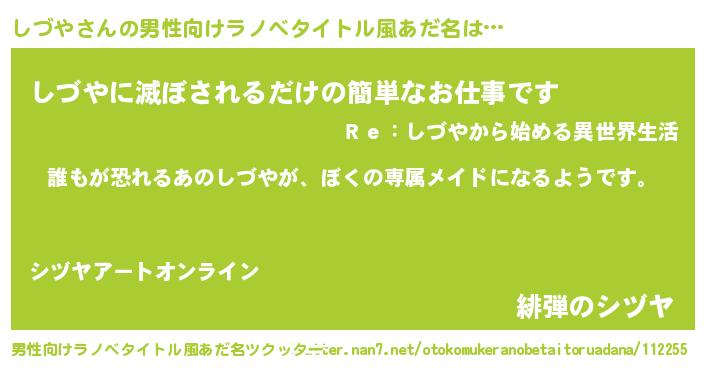 | 女子向けラノベタイトル風あだ名 | 『異世界でカフェしづやを開店しました。』 |