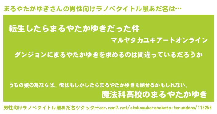 | 女子向けラノベタイトル風あだ名 | 『まるやたかゆきの卵を拾いまして』 |