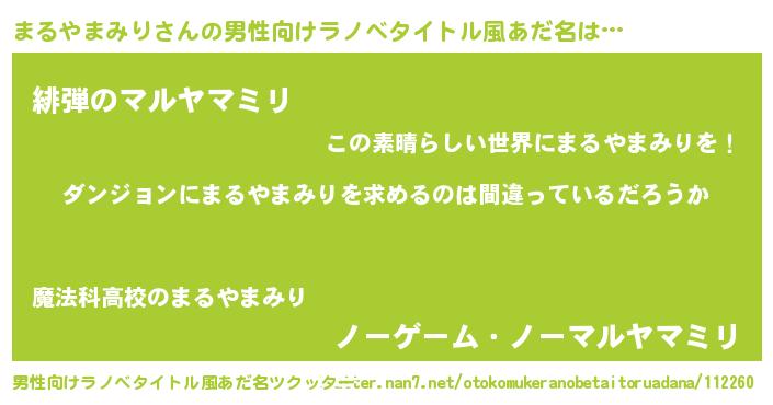 | 胡散臭い通販商品みたいなあだ名 | 『信頼と実績のペンダント…その名も「まるやまみり」』 |