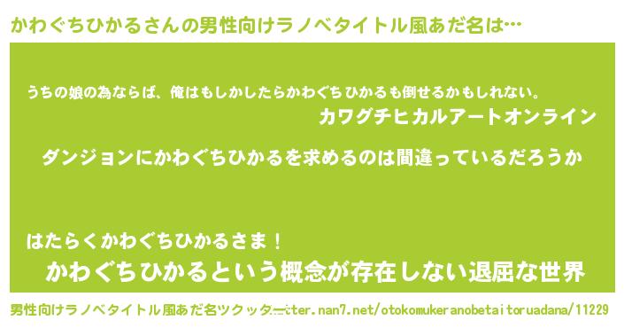 | 女子向けラノベタイトル風あだ名 | 『かわぐちひかるは平凡を望む』 |