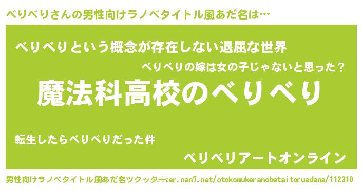 | ヘコむあだ名 | 『べりべり(小並感)』『べりっふぃ~』 |