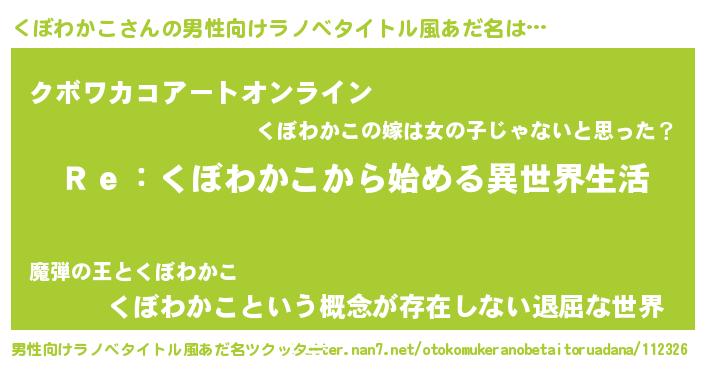 | 女子向けラノベタイトル風あだ名 | 『くぼわかこストレイドッグス』 |