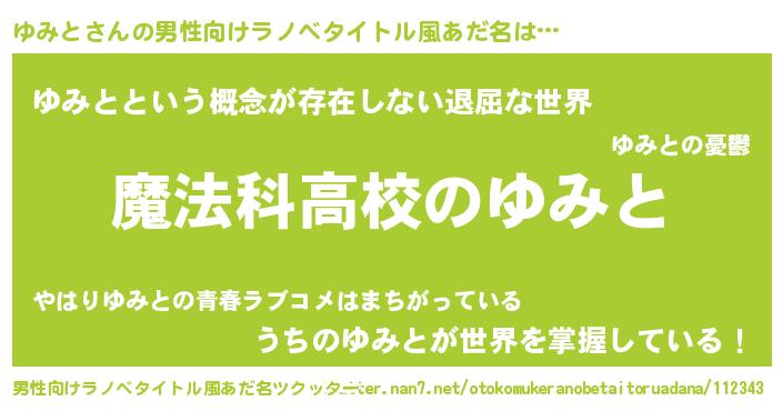 | 意味不明あだ名 | 『自称ゆみと』『永久保存ゆみと』 |