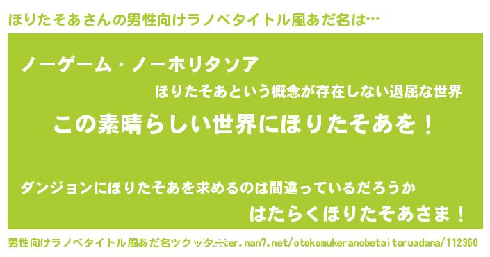| 意味不明あだ名 | 『住所不定無職ほりたそあ(7歳)』 |