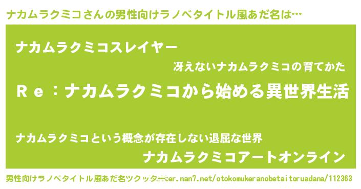 | 女子向けラノベタイトル風あだ名 | 『闇のナカムラクミコ』 |