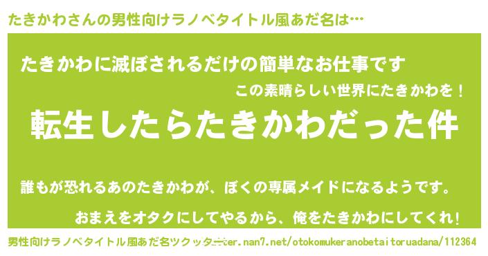 意味不明あだ名 | 『なめこ科たきかわ属』『自称たきかわ』 |