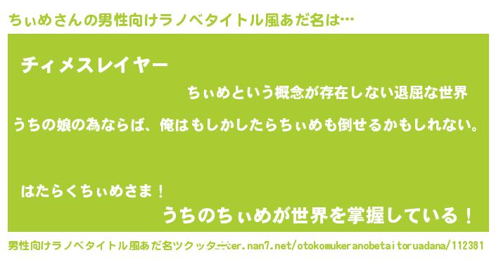 | 女子向けラノベタイトル風あだ名 | 『ちぃめ伯爵の花嫁』 |
