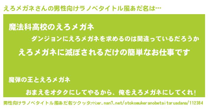 | 意味不明あだ名 | 『自称えろメガネ』『永久保存えろメガネ』 |