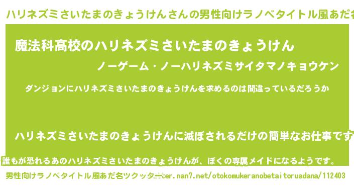 | 女子向けラノベタイトル風あだ名 | 『ハリネズミさいたまのきょうけんの卵を拾いまして』 |