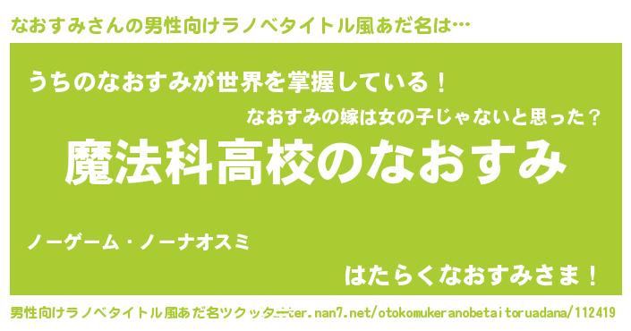| 女子向けラノベタイトル風あだ名 | 『なおすみなんてお断りですっ。』 |