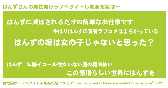 | ピコ太郎風あだ名 | 『ハン八郎』『ピハ史郎』『ハハ太郎』 |