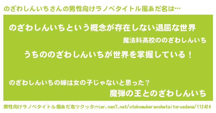 | ヘコむあだ名 | 『のざわしんいち(爆)』『のざっ子』 |