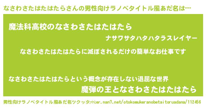 | 意味不明あだ名 | 『自称なさわさたはたはたら』 |