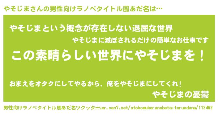 | ヒーロー風カッコイイあだ名 | 『仮面ヤソダー』『ネオヤソジマ』 |