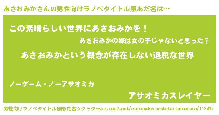 | 意味不明あだ名 | 『永久保存あさおみか』 |