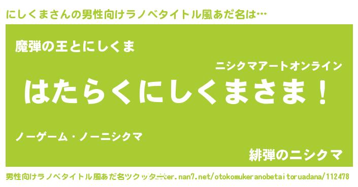 | 意味不明あだ名 | 『住所不定無職にしくま(91歳)』 |