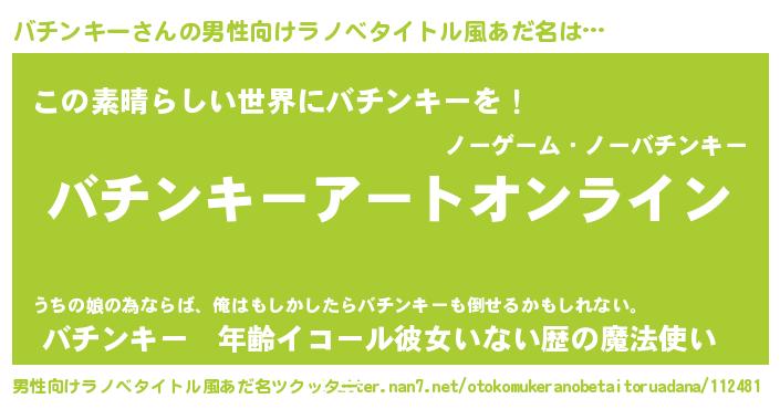 | ヘコむあだ名 | 『バチにー』『なまこ酢』『バチっぺ』 |