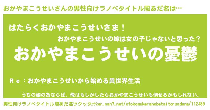 | 胡散臭い通販商品みたいなあだ名 | 『必ず成功する霊験あらたかなお札…その名も「おかやまこうせい」』 |