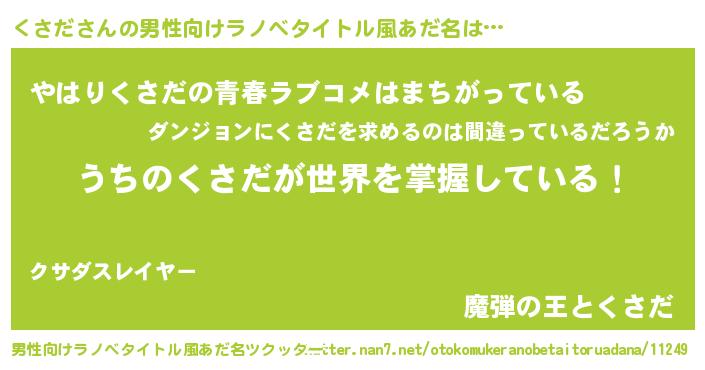 | 女子向けラノベタイトル風あだ名 | 『男装くさだの憂鬱な任務』 |