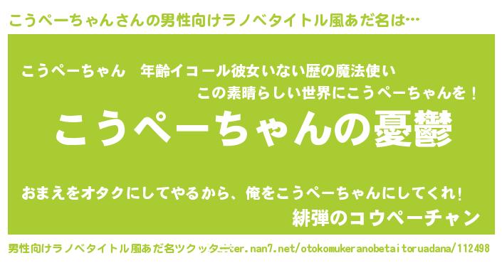 | 女子向けラノベタイトル風あだ名 | 『こうぺーちゃん姫と円卓の騎士』 |