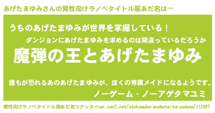 | ヘコむあだ名 | 『あげ太郎』『あげたまゆみ(笑)』 |