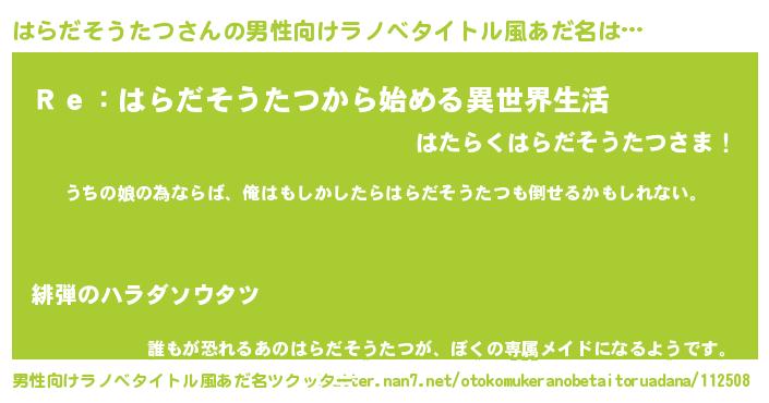 ファンタジー風あだ名 | 『エターナルハラダソウタツー』 |