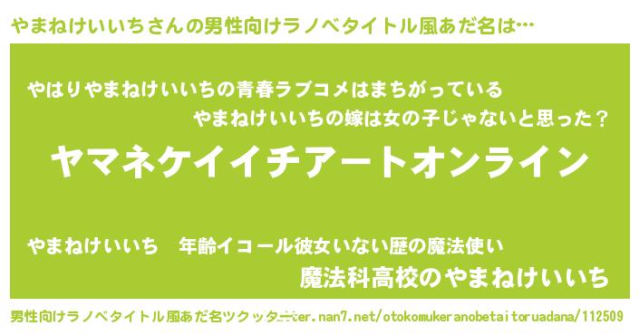 | 女子向けラノベタイトル風あだ名 | 『誰かこのやまねけいいちを説明してください! ~契約から始まるウェディング~』 |