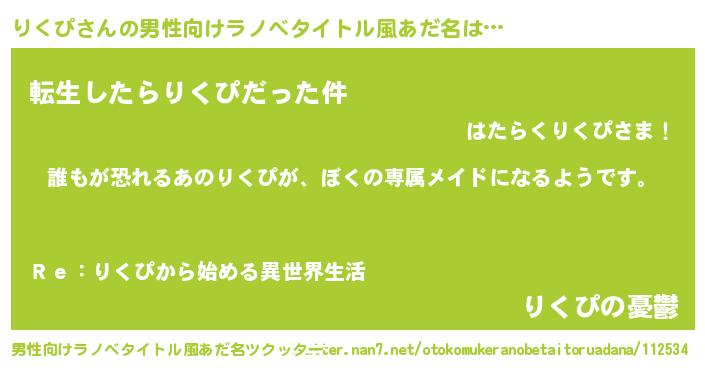 | 女子向けラノベタイトル風あだ名 | 『異世界でカフェりくぴを開店しました。』 |