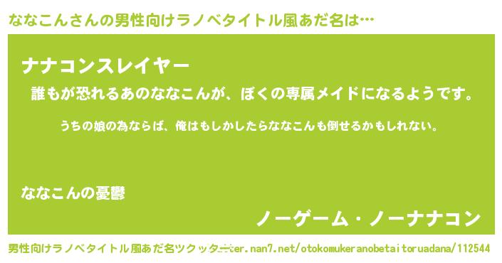 | ヒーロー風カッコイイあだ名 | 『ウルトラななこんマン』『ネオナナコン』 |