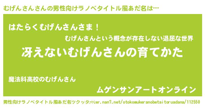 | ヘコむあだ名 | 『むげにー』『むげんさん(遠い目)』 |