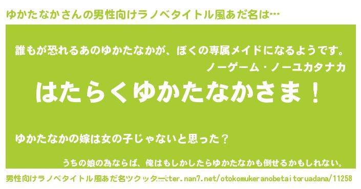 | 胡散臭い通販商品みたいなあだ名 | 『絶対に幸福をもたらす健康食品…その名も「ゆかたなか」』 |