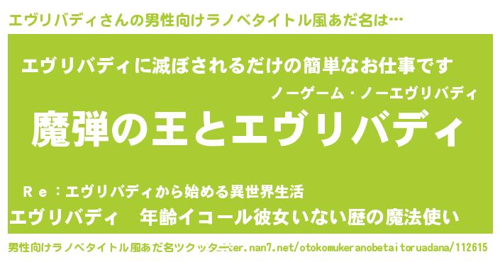 | ヒーロー風カッコイイあだ名 | 『仮面エヴダー』『究極戦士エヴリバディ』 |